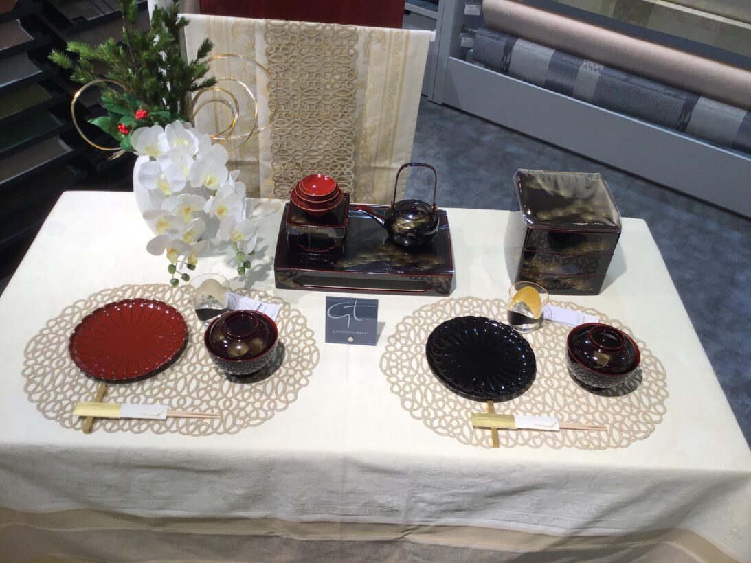 そんなわけでガルニエ・ティエボーのディスプレイも早速お正月のテーブルセッティングにいたしました。