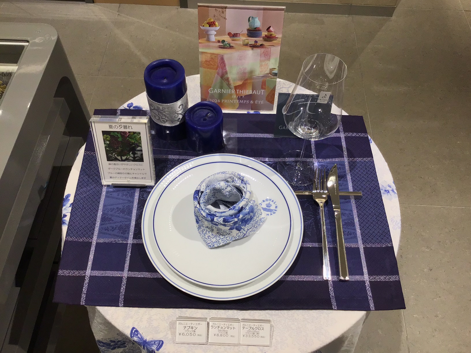 2024年7月22日 / 最終更新日時 : 2024年7月22日 パシフィックレ・ Catalog 2024年7月12日【銀座三越】ガルニエ・ティエボー ヴォリエール/ブルー展開中 銀座三越7階 ガルニエ・ティエボーコーナーは 夏らしい麻のクロス ヴォリエール ブルー ランチョンマット、ペルシナ ダークブルーを重ねてディスプレイ。 ロイヤルコペンハーゲンのプレート、ブルーラインで 夏のディナータイムをイメージしています。 銀座三越にお越しの際はぜひお立ち寄りください。 ・テーブルクロス:ガルニエ・ティエボー ヴォリエール ブルー ・ランチョンマット:ガルニエ・ティエボー ペルシナ ダークブルー 銀座三越フロアガイドはこちら 駒込本店オンラインストアはこちら 共有:Click to share on Twitter (新しいウィンドウで開きます)Facebook で共有するにはクリックしてください (新しいウィンドウで開きます) 関連