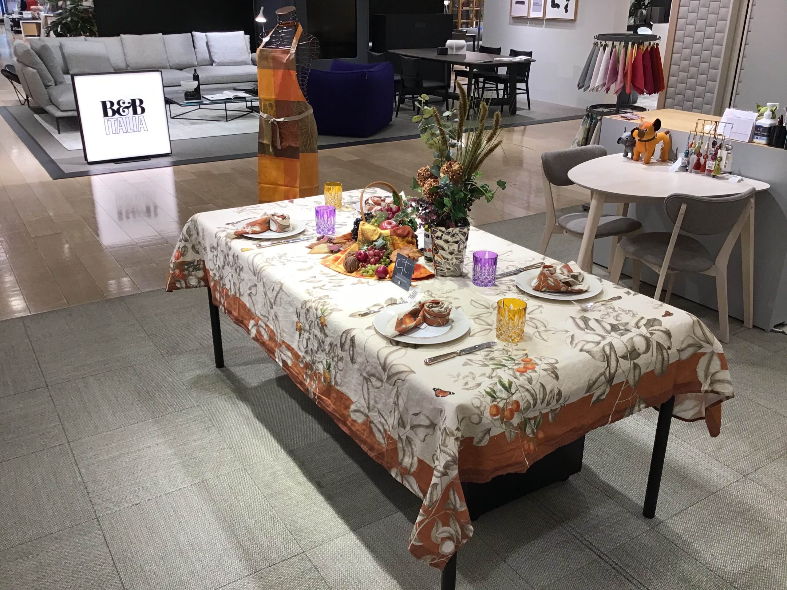 気負わずさりげなく掛けるだけで、抜け感のあるエレガントなシーンの演出ができるプリントクロスを