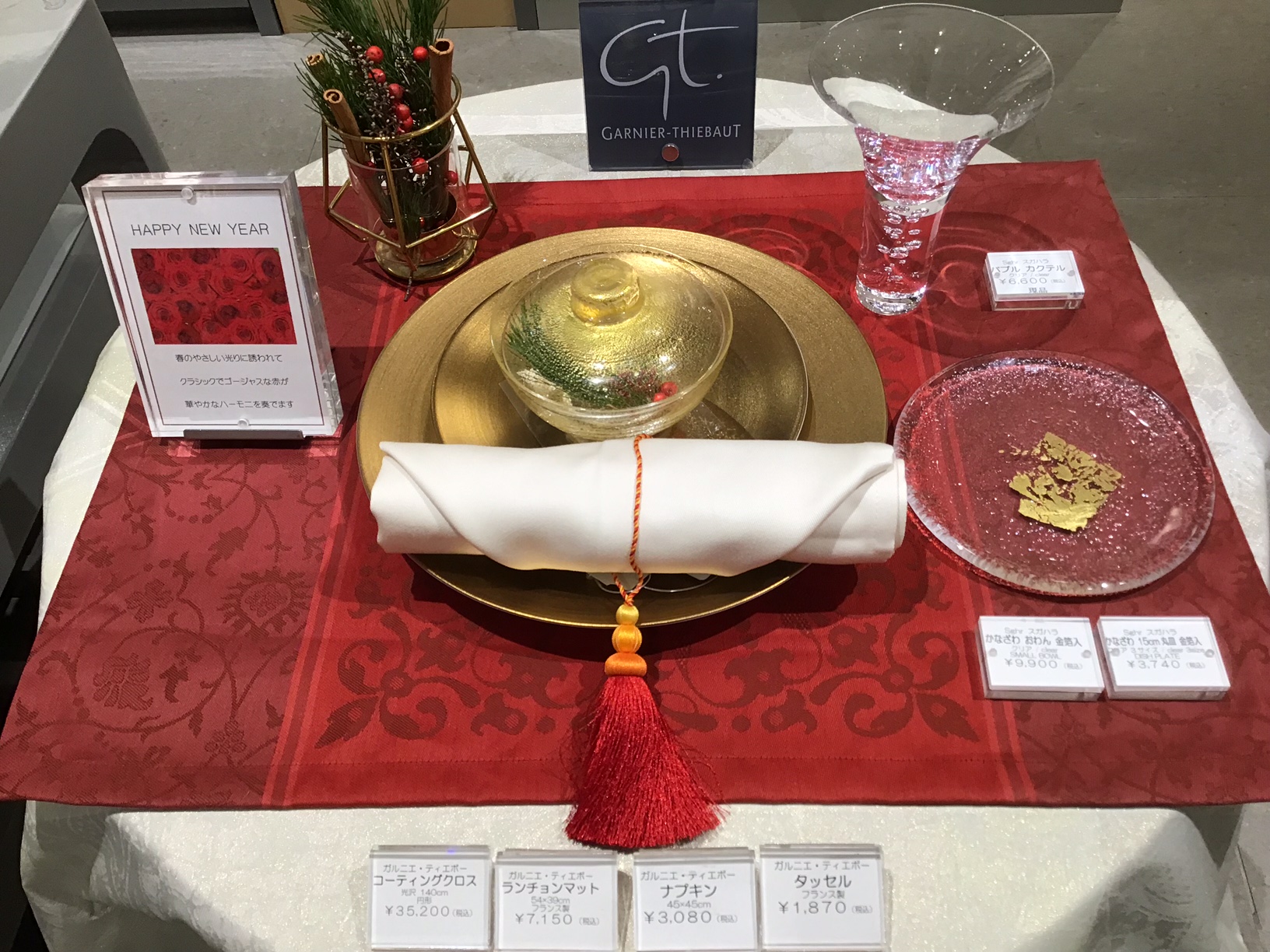 お正月ディスプレイはカッサンドル グルナのランチョンマットを使用