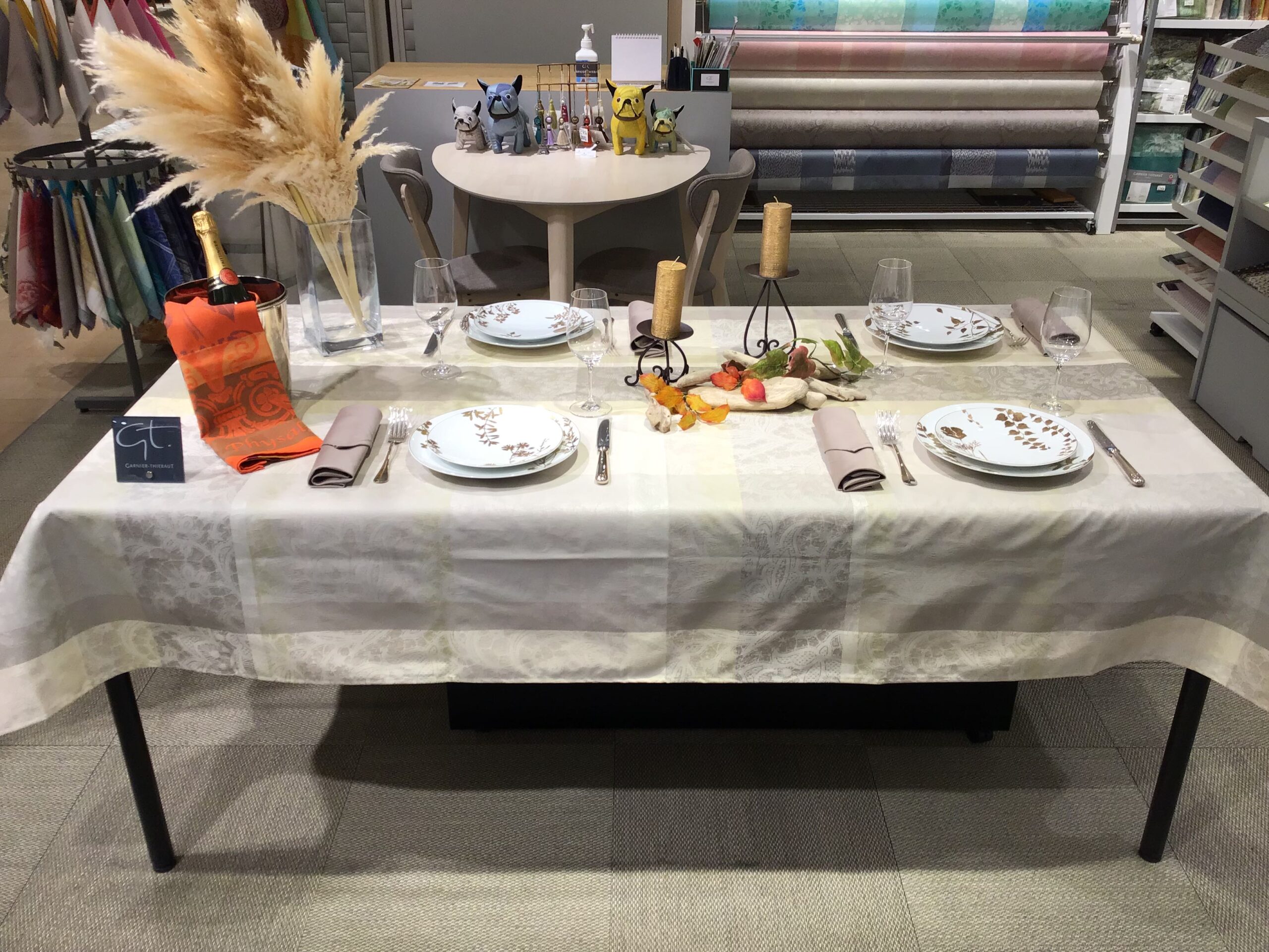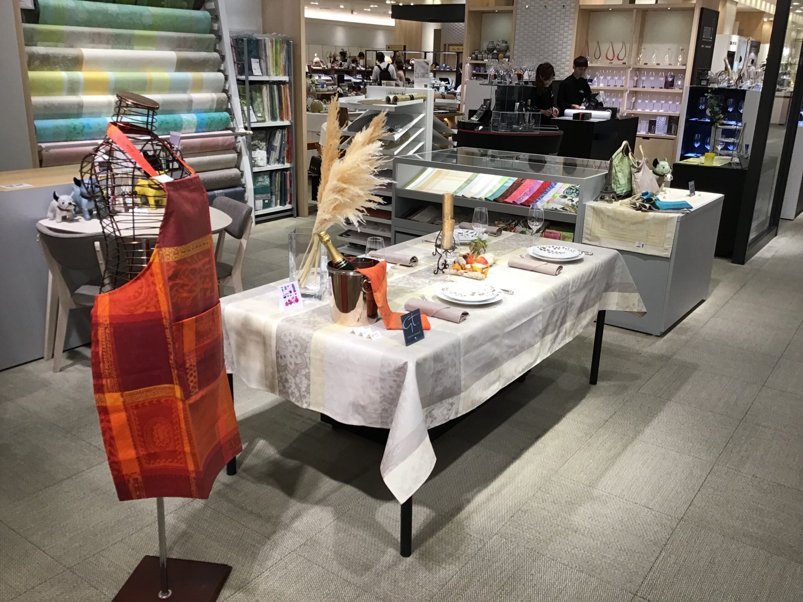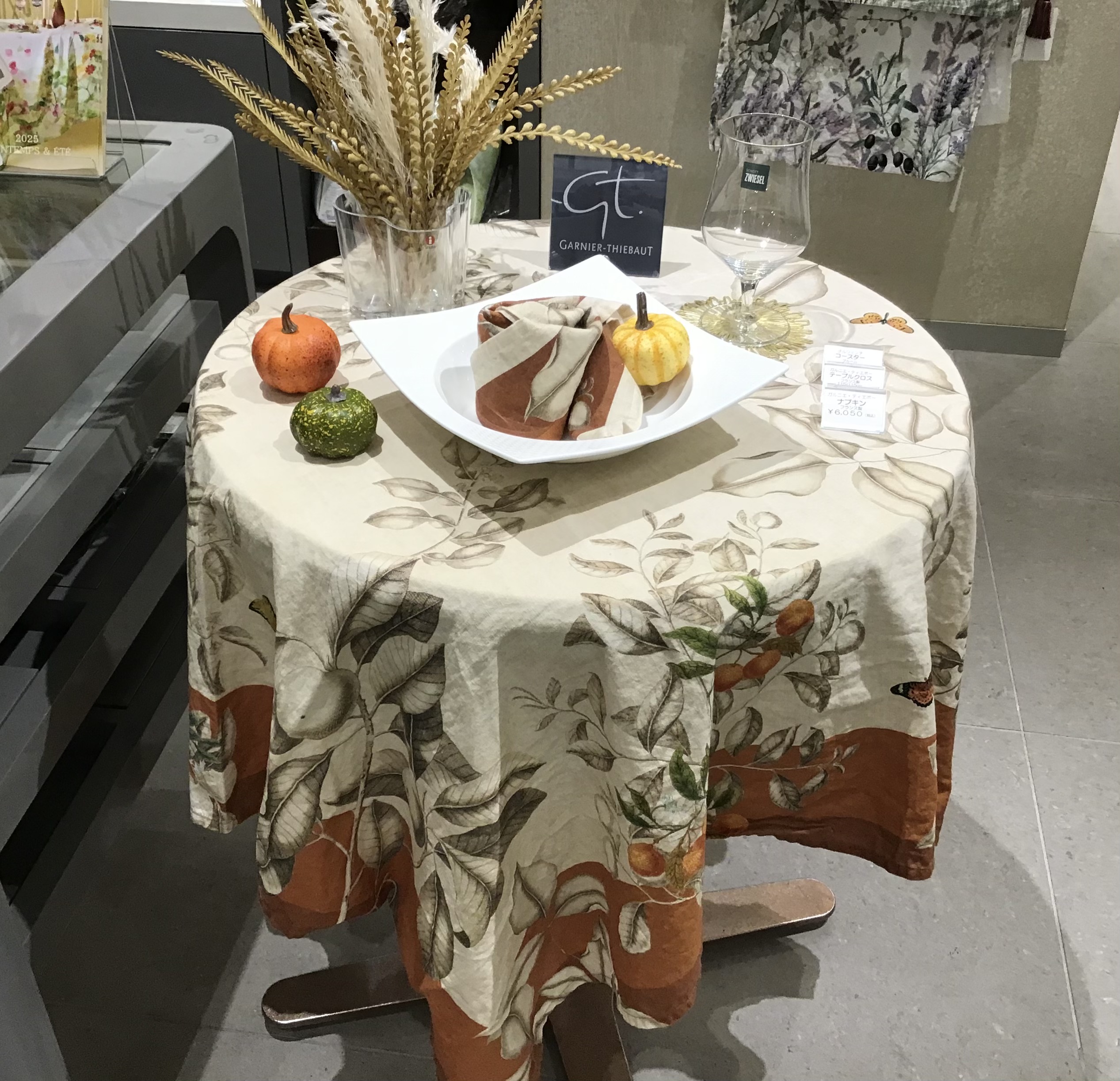 2025年9月30日 / 最終更新日時 : 2025年9月30日 パシフィックレ・ Catalog 2025年9月の店頭ディスプレイ 阪急うめだ本店 新たな季節を迎える準備。 使用クロスはミルダンテル/ナチュレル ゆったりと過ごす時間にお勧めのナチュラル秋色デコレーション。 JR名古屋タカシマヤ 季節の移ろいを感じるアジサイ柄を秋色トーンで表現したクロスはオルテンシア/ルイユ 華やかさと上品さを兼ね備えた一枚です。 銀座三越では温かみのある色合いで、食卓を季節感たっぷりに演出してくれる マンダリン/ルイユを使っています。 共有:Click to share on Twitter (新しいウィンドウで開きます)Facebook で共有するにはクリックしてください (新しいウィンドウで開きます) 関連