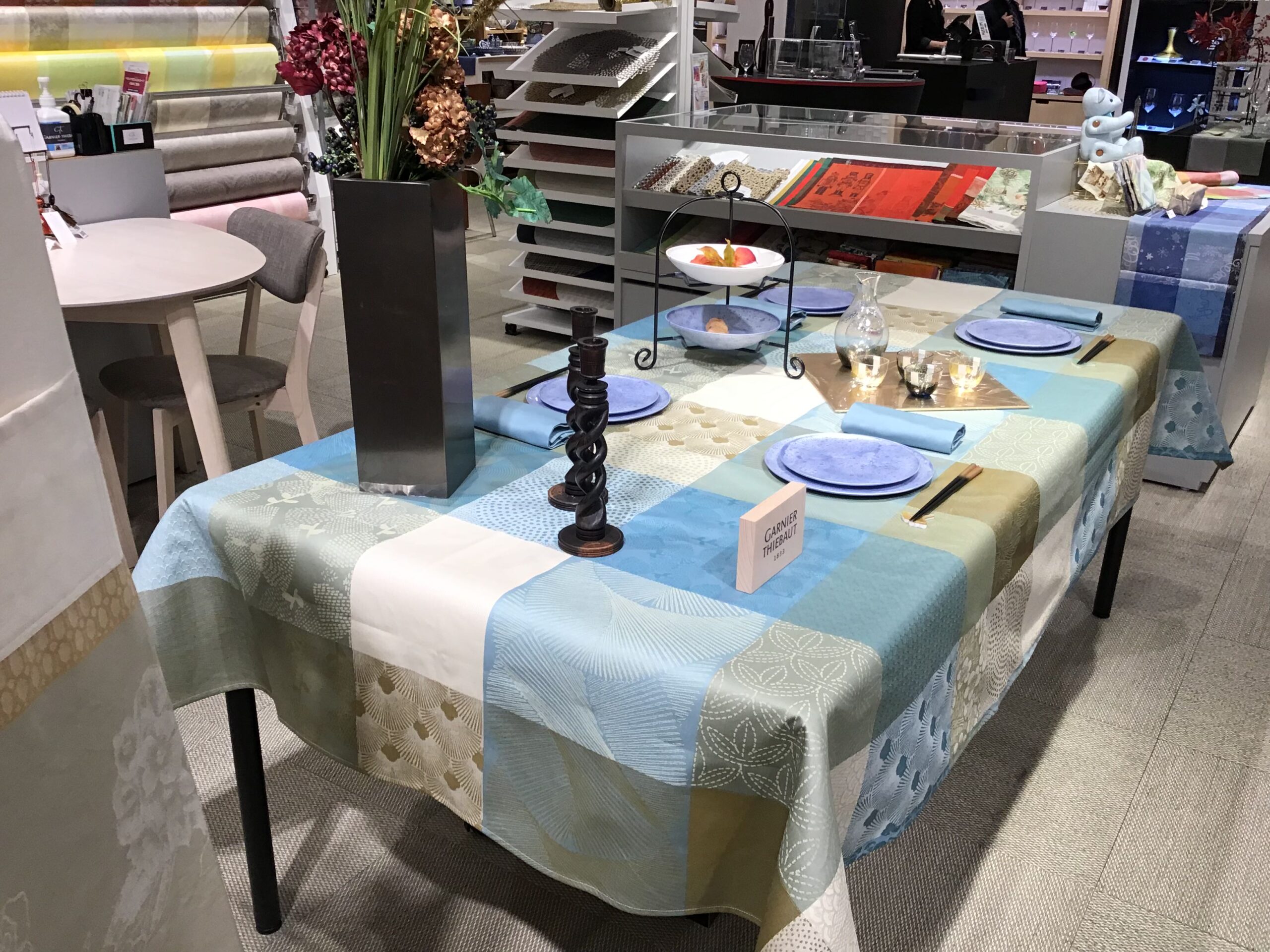 ブルーとベージュの上品なカラーのクロスはミルゼン/エキュム